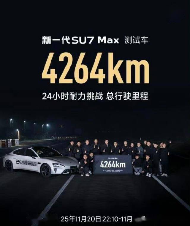 这场在江苏盐城专业试验场演出的“耐力盛宴”,远比数字更震慑。新SU7在全长7.8公里的高速环道上接连狂飙24小时,期间替换进行240km/h极限行进与超快充补能,仅替换驾驶员不泊车,全程饱尝2-15℃的昼夜温差检测。终究4264公里的总路程,较保时捷Taycan的3425公里多出839公里,比小鹏P7此前创下的3961公里纪录抢先303公里,就连奔驰CLA纯电的3717公里也被远远摆开距离,这种断层式抢先,可谓电车范畴的“降维冲击”。